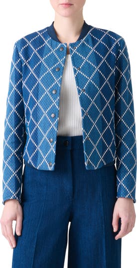 A graphic diamond motif rendered in a jacquard weave stands out on this cotton jacket designed in a cropped bomber silhouette.
