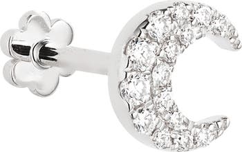 Bring a hint of celestial sparkle to any stack with this 18-karat gold crescent moon stud earring filled with twinkling pavé diamonds.