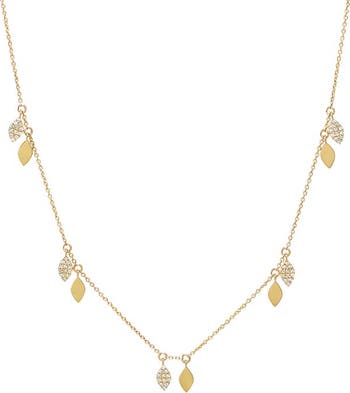 Diamond Pave/Solid Marquise Charm Necklace 14K