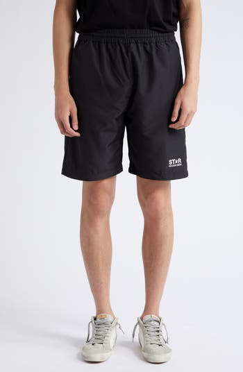 The Italian brand s logo star fashions the thigh of these sporty shorts with a wide-leg fit and flexible elastic waist.