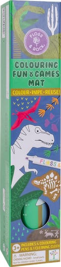 Your kiddo will be transported to the Jurassic period with this dinosaur-themed travel-friendly activity mat complete with games, mazes and areas for coloring with magic wipeable pens so your kiddo can easily pass the time of long car rides without making a mess.