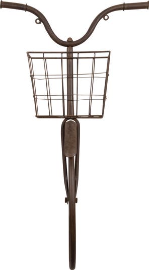 Distressed Rust Bike Shaped Metal Wall Décor with Basket
