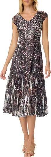 From suitcase to sensational entrance, this wrinkle-resistant combo of charmeuse and chiffon is cut into a pleated, lace-sleeve dress that will never show its mileage|Cap Sleeve Charmeuse Dress