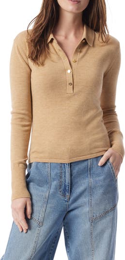 Gilded buttons polish a versatile sweater knit from a wool-kissed blend for lightweight warmth.