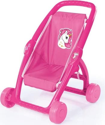 - UNICORN-THEMED: The stroller features a charming pink color scheme with a magical unicorn graphic, making it visually appealing for children. Specifically designed for pushing around baby dolls and your favorite plushies.