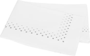 A lightweight sheet made from Egyptian cotton percale is set off with ombré rows of dot embroidery.