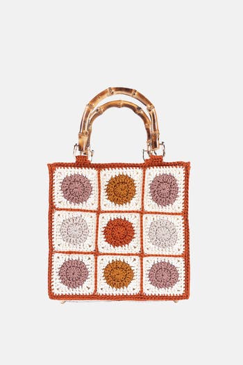 The Dottie is a smal, square-shaped crochet bag that captures the warmth and beauty of a sunset in its design. Featuring a harmonious blend of orange and neutral tones, this bag evokes the serene and calming hues of a twilight sky. The intricate crochet work showcases these colors in a pattern that feels both modern and timeless. A rattan handle adds a natural, earthy touch, perfectly complementing the sunset palette. Compact yet stylish, the Dottie is an ideal accessory for adding a pop of color to your outfit, whether you re out for a casual stroll or enjoying an evening event. Its charming design and sunset-inspired colors make it a standout piece that embodies the peaceful beauty of nature.