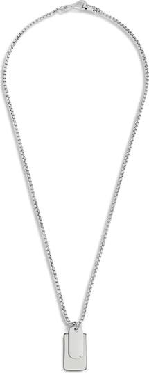 A doubled dog tag adds bold dimension to this pendant necklace styled with a rope-link chain handmade in New York City.