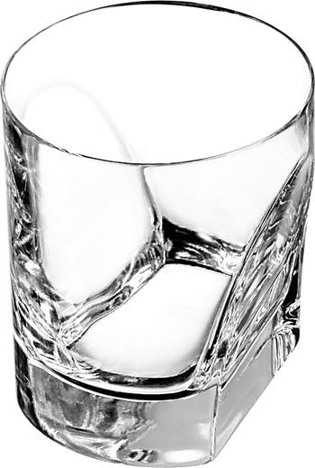Part of the Conversazione Collection designed by Enzo Mari in 1999, this set of four double old-fashion glasses embodies dialogue between unique volumes. Each glass has a different sculptural base, creating harmony and visual intrigue. Crafted entirely of crystal with lateral cuts for a secure grip, the set combines sophistication and modern elegance. Perfect on its own or paired with other pieces from the collection for a cohesive look.