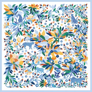 "Day Jungle Reverie" is designed to evoke the feeling of an animal park nestled in the jungle. The animals are scattered throughout the forest, creating a peaceful and harmonious scene. Features hand-rolled edges that provide a luxurious finish and comes with our premium packaging box. This silk-wool blend scarf combines the softness of silk with the warmth of wool. Lightweight yet cozy. A versatile accessory to elevate any outfit.