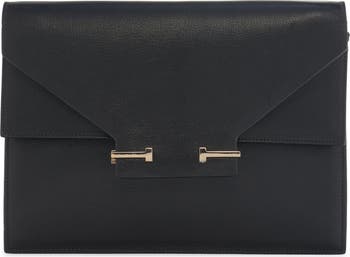 Gleaming double-T hardware on the layered flap adds an elegantly simplistic signature to this sleek shoulder bag crafted in Italy from goatskin leather. For added versatility, you can remove the adjustable strap and carry the accordioned style as a minimalist clutch.