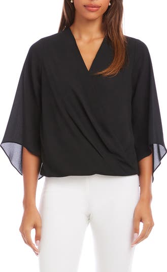 An elegantly draped silhouette and fluttery three-quarter sleeves make this silky crepe top an ideal option for the office and beyond.
