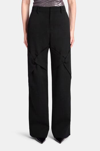 Draped Knee Black Wool Trouser