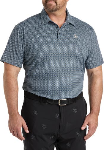 For over 60 years, Original Penguin, and its namesake icon, Pete the Penguin, has been adored by the masters of golf, leisure and sport to define itself as an American classic. This polo shirt is sure to be a favorite year after year with its easy-fitting style and moisture-wicking properties that keep you feeling cool and dry. Lightweight and breathable with an almost silky texture that s cool to the touch , it is enhanced with stretch for flexible comfort, on or off the course, and is sustainably made in a recycled fabric blend for a smaller ecological footprint. The allover flash card print pattern features a variety of different drink and penguin motifs that are suitable for the "19th hole" and set it apart from more traditional polos in your collection.