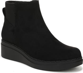 A subtle platform and wedge heel deliver walkable height on a season-spanning bootie featuring Soft System® comfort technology for comfortable shock absorption and stability.