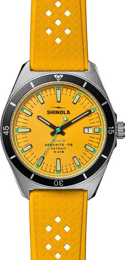 The Detroit-based watchmaker s sporty Duck watch is back in a colorful, cool redesign that includes a basket-weave-textured tropic-style rubber strap and a customized caseback etched with the model s namesake demonstrating one way to test the reliable water resistance this timepiece has always been known for.
