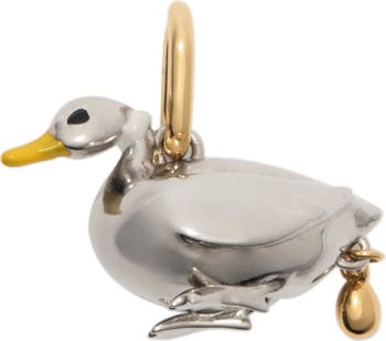 A palladium-plated duck charm made in Italy. Evoking British wildlife, the design features an enamel beak and a gold-plated egg.||Comes with a dust bag