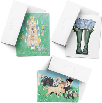 This 3-pack of assorted Easter greeting cards is elegantly illustrated by artist Ingrid Ramus, founder and owner of the Ramus Co brand. The cards are blank inside. All greeting cards are made in the USA on heavyweight uncoated and locally-manufactured card stock. Each card is individually wrapped in TUV Austria certified-compostable PLA sleeves. Each card is accompanied by a hand-embossed envelope made with heavyweight 95lb paper and a peel-and-stick flap - no licking envelopes here! All Ramus Co. greeting cards are printed on FSC© and SFI© certified paper sourced from a regional mill that harnesses 66% of its energy from on-site sustainable sources, such as emission-free hydroelectricity and biomass co-generation from wood waste. Additionally, our greeting cards are thoughtfully packaged in bags made from certified compostable PLA material. Husband-and-wife team Calvin and Ingrid Ramus founded Ramus Company in 2019, in New England, USA. Ingrid, the creative designer behind the brand, originates from Mexico, where she cultivated her skills in fashion and textile design. Drawing from her unique and inquisitive perspective on preppy style, Ingrid prolifically designs whimsical yet classic stationery and lifestyle items..