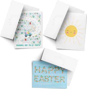 - Card 3 front artwork: "sending joy to my peeps" easter bunnies in golf cart
