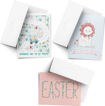 - Card 1 front artwork: "have a happy Easter" floral scene