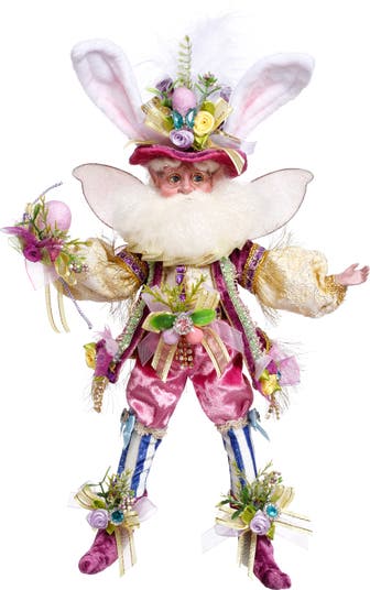 The Easter Egg Fairy (Small - 11.5 Inches) is a whimsical, handcrafted collectible dressed in vibrant spring colors. Adorned with pastel flowers, sparkling ribbons, and glittering accents, this fairy brings a touch of Easter magic to any display. Complete with bunny ears, a fluffy beard, and delicate wings, it perfectly captures the festive spirit of the season.