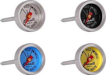 The Escali AHS1-4 Easy Read Steak Thermometer Set will help you cook steak exactly how you like it with the incredibly simple Rare, Medium and Well-Done dial indications. The unique and brightly colored dial faces are easy to read and help you keep track of individual steaks. Their durable stainless-steel design is oven, grill and dishwasher safe.