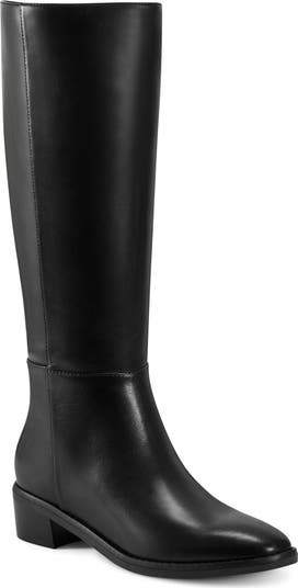 A squared off toe and stacked block heel balance a rich leather boot shaped in a knee-high silhouette for timeless appeal.