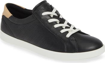 Street style takes a sophisticated turn with this low-top sneaker shaped from richly grained leather with trendy perforated stripes and a contrast heel detail.