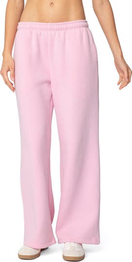 Logo lettering adds on-trend branding to the back of comfy-casual sweatpants with wide legs and a relaxed fit.