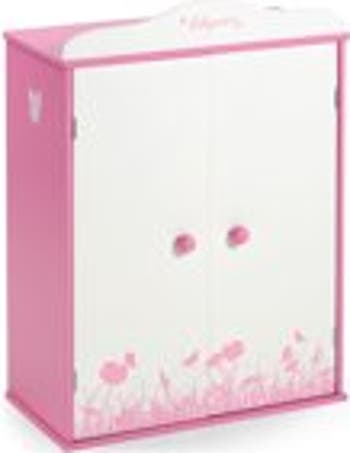 This beautiful pink and white wardrobe is the perfect place to store you doll s clothes. The opening doors feature a design of flowers and butterflies on the front. This wardrobe includes five hangers and assembly instructions. Suitable for ages 3 years and older. WARNING: CHOKING HAZARD -- Small parts. Not for children under 3 yrs.