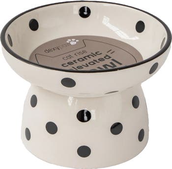 - STYLISH SOPHISTICATED: Sleek white black polka dot design adds a touch of elegance to your home decor while showcasing your cat’s meals. Blends seamlessly with modern interiors and enhancing your feeding setup.