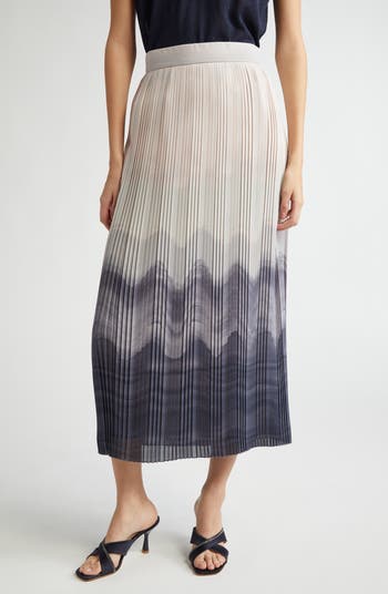 Knife-sharp pleats awash with waves of ombrés hues bring dynamic volume to this georgette skirt impeccably crafted in Italy.