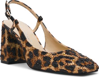 Sparkling rhinestones dazzle and delight on this event-ready slingback pump covered in a vibrant floral pattern.
