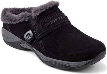 Faux-shearling trim amplifies the cozy comfort of this suede mule grounded by a cushy, arch-supporting insole.