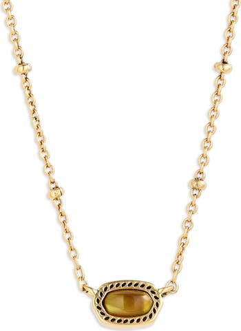 A pastel-hued pendant brings a fresh pop of color to a dainty station-chain necklace plated in glossy 14-karat gold.