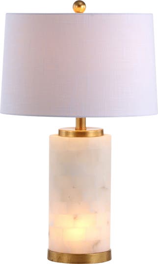 Made from real stone, our alabaster lamp¡¯s geometric lines are accented with metallic gold. This modern lamp features a built-in accent light; a low-watt LED bulb inside the base gives the alabaster a soft glow. Quality touches include a empire linen shade, gold finial and silk-wrapped cord.