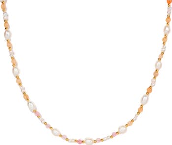- Freshwater Pearl, blue quartz beads and 14k gold plated beads
