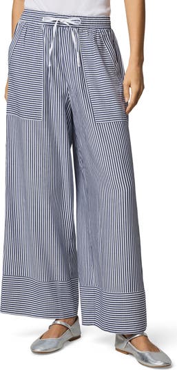Directional stripes polish lightweight pants closed with a drawstring and finished with way-wide legs.