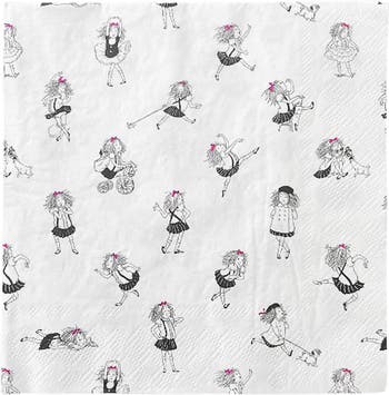 Our Eloise collection features the fun-loving and “rawther” precocious girl herself! She may be little, but her free-spirited personality gets her into all sorts of trouble on the tippy top” floor of the Plaza Hotel. This collection is sure to bring out the mischievous six-year-old in all of us! These black and white napkins feature pops of pink. This fun napkin features a playful Eloise design that s perfect for any occasion!