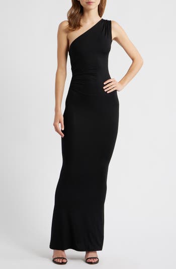 Give your curves a hug in this delightfully asymmetric mermaid gown featuring a ruched side and a shoulder-baring neck.