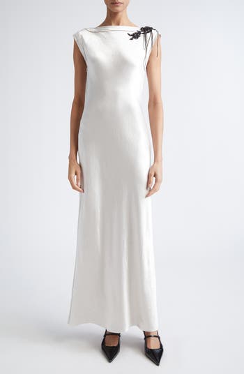 Embellished Cap Sleeve Washed Twill Gown