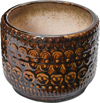Embossed Stoneware Planter with Reactive Glaze