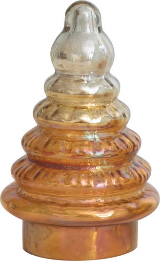 - This beautiful tree decoration is made of embossed mercury glass with a 2-tone amber color, adding a warm and festive touch to any holiday decor