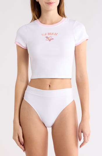 Made of a stretch-cotton rib, this cropped cover-up T-shirt is perfect for your next island getaway with its beachy embroidery.