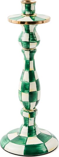 Emerald Check Large Enameled Steel Candleholder