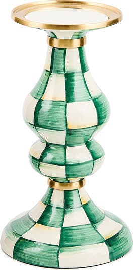 Elevate your illumination situation with the hearty presence of this candleholder that s hand-painted with color-dragged checks and highlighted with gilt details that amplify your candle s flame.