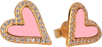 The cutest little heart shaped stud earrings with enamel center and zircon stones surrounding. Materials: Sterling Silver plated in 18k yellow gold and Colorful Enamel hoop earrings with Zircon stone. Hinge opening. For pierced ears.
