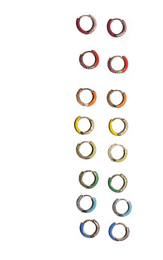 Enamel Sparkle Huggies in 14K Gold