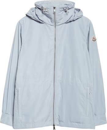 A versatile lightweight layer for warmer weather, this hooded jacket is made from Moncler s Micro fabric, a high-density material with a compact, taffeta-like feel. A removable hood and internal drawstring let you customize the look.