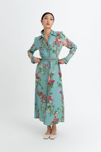 Step into refined style with our lilac floral midi dress. Designed with a button-down front, long sleeves, and a matching fabric belt, it offers a flattering fit with a touch of charm. The soft viscose fabric and delicate floral print make it an effortless choice for any occasion.